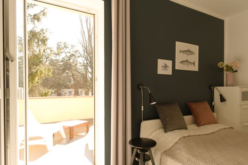 Das ein-Zimmer-Apartment eignet sich am besten für zwei Personen. Es ist mit einem Queensize-Bett (160 x 200 cm) ausgestattet und bietet den direkten Zugang zur Südterasse an. Ein eigenes Duschbad mit Toilette sowie eine Küchenzeile gehören selbstverständlich zur Standardausstattung.
